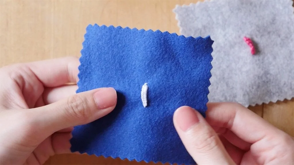 1. With a double-up thread, sew the base for the loop 2-3 times as close to each other as possible as shown in the photo, the length for the loop is according to the size of the metal fittings of the hook.