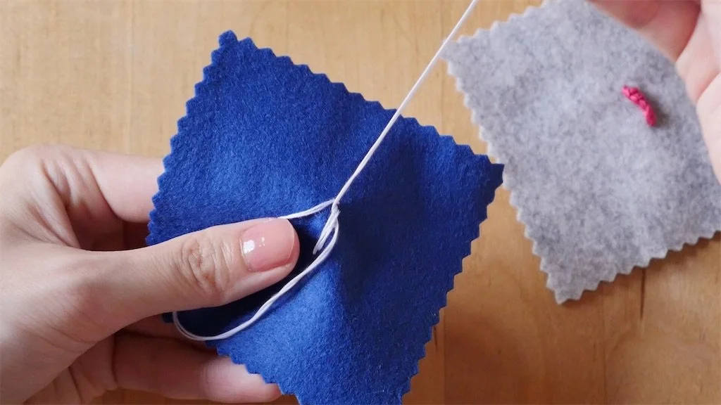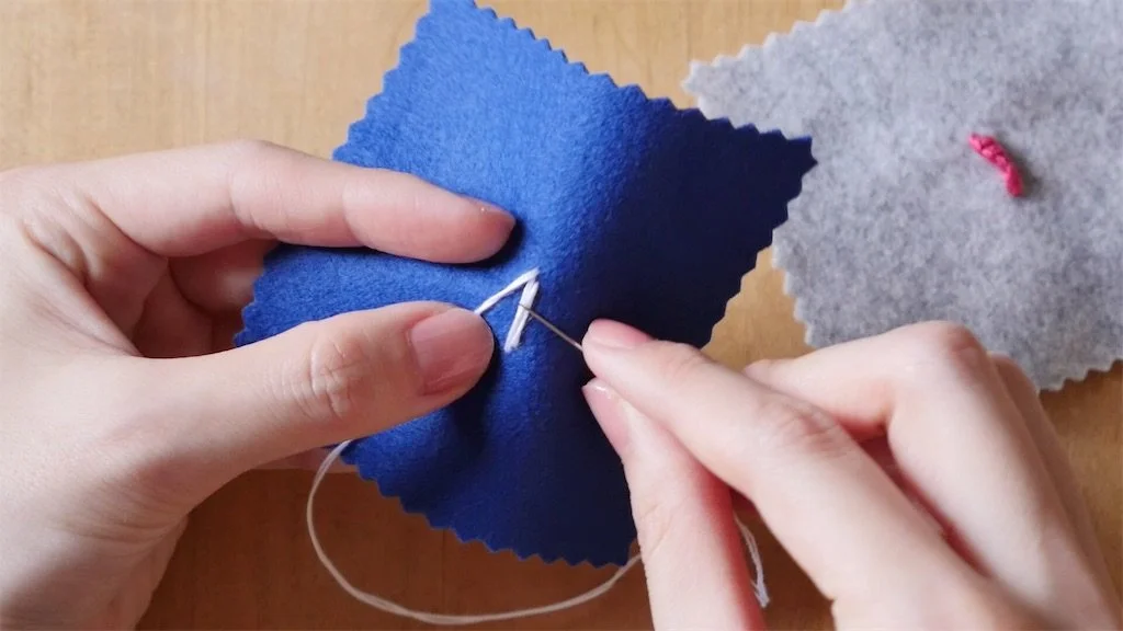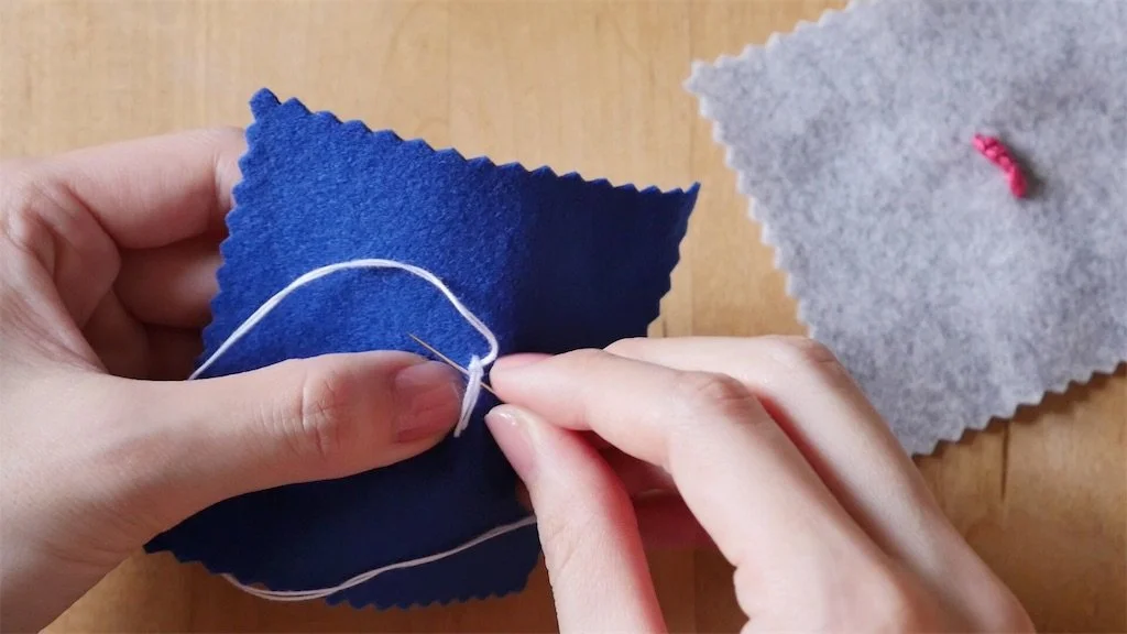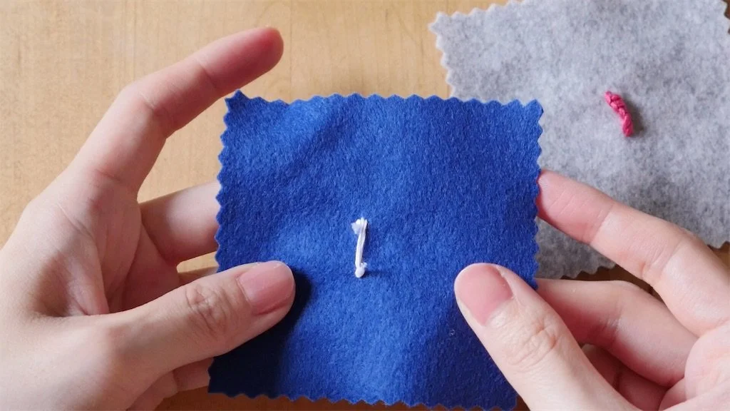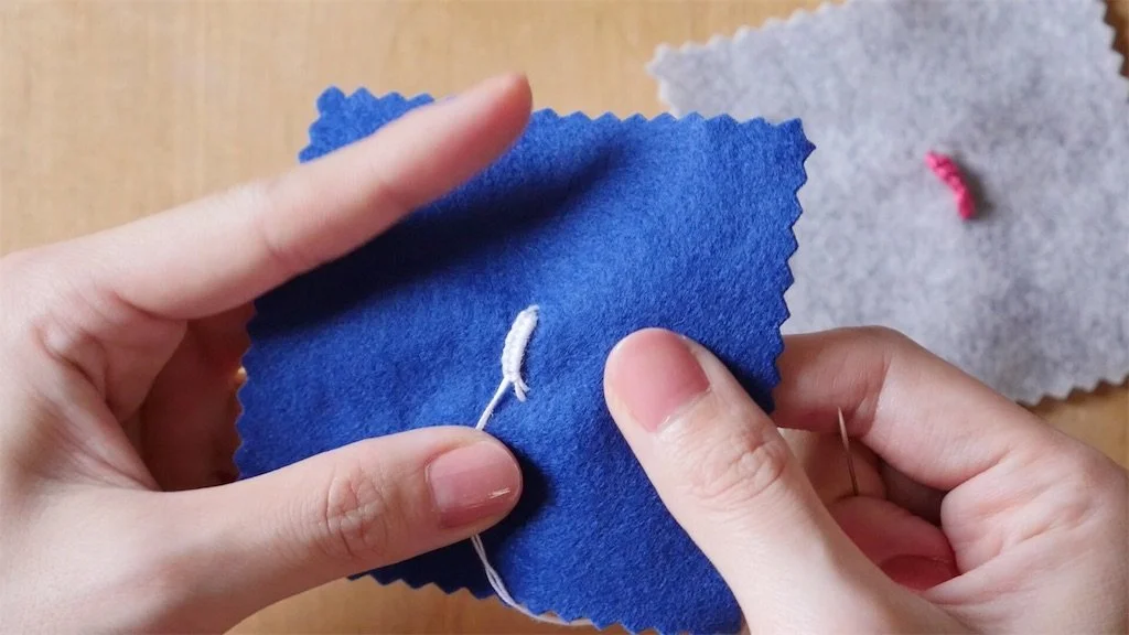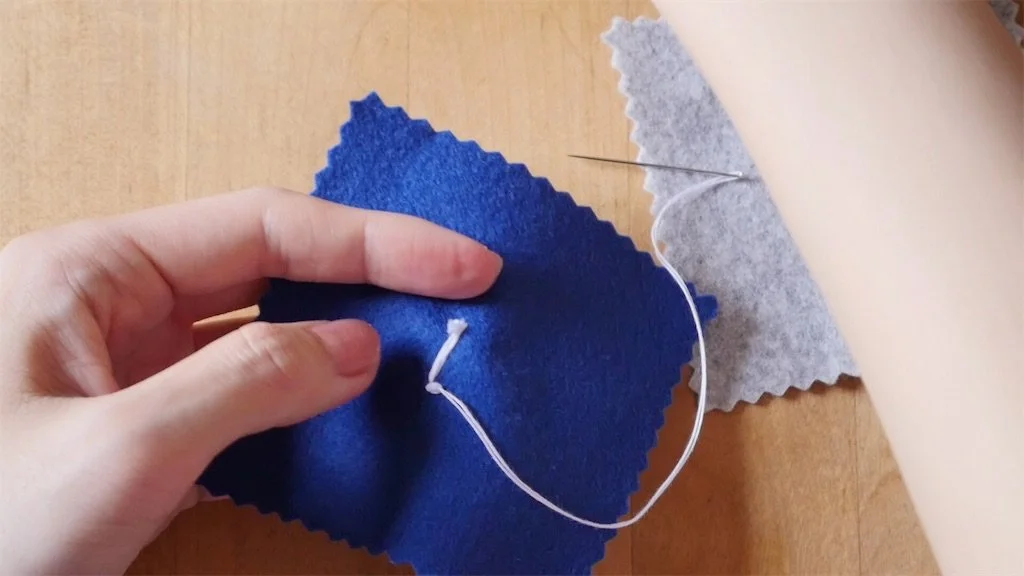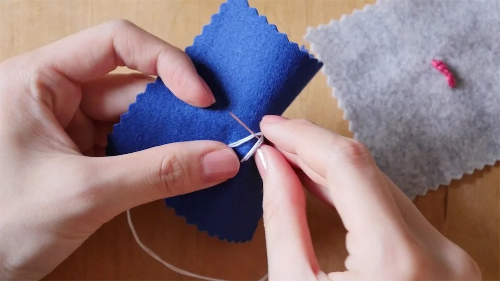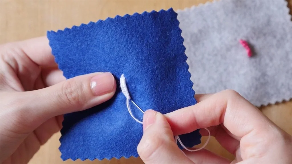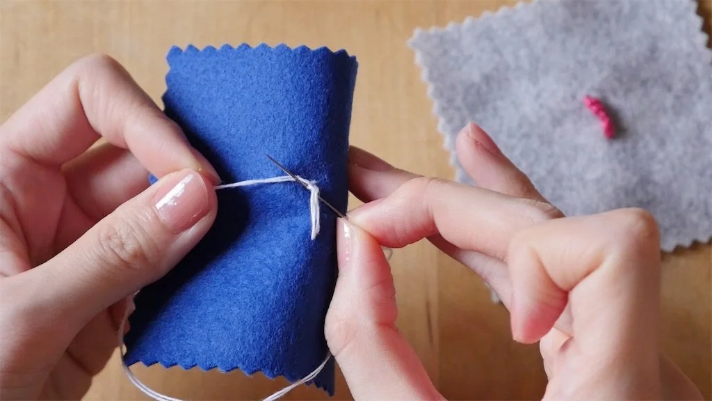 4. Pull the needle through while keeping the thread on and you will have a knot.